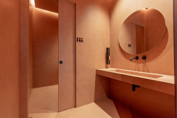 Venedik sıvasından esinlenen yüzeyi ve pişmiş toprak tonlarının yumuşak geçişleri,