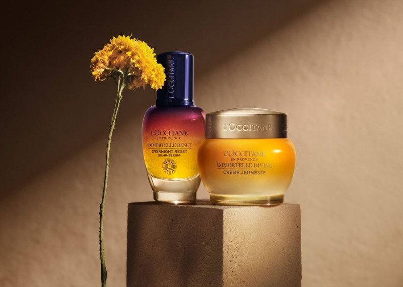 Altın şişede lüksü hissettiren L’Occitane Immortelle Reset Serum ve Immortelle Divine Krem, ciltle senkronize bir şekilde çalışarak binlerce altın rengi Immortelle yağı ile cildi onarıyor ve yeniliyor. Krem ise mükemmel bir son dokunuş yapıyor. Zengin ama tüy kadar hafif, 600 Ölmez otu ve hyaluronik asidin gücüyle zenginleştirilmiş formülü cildi nemlendiriyor, sıkılaştırıyor ve içten gelen o ışıltıyı ortaya çıkarıyor.