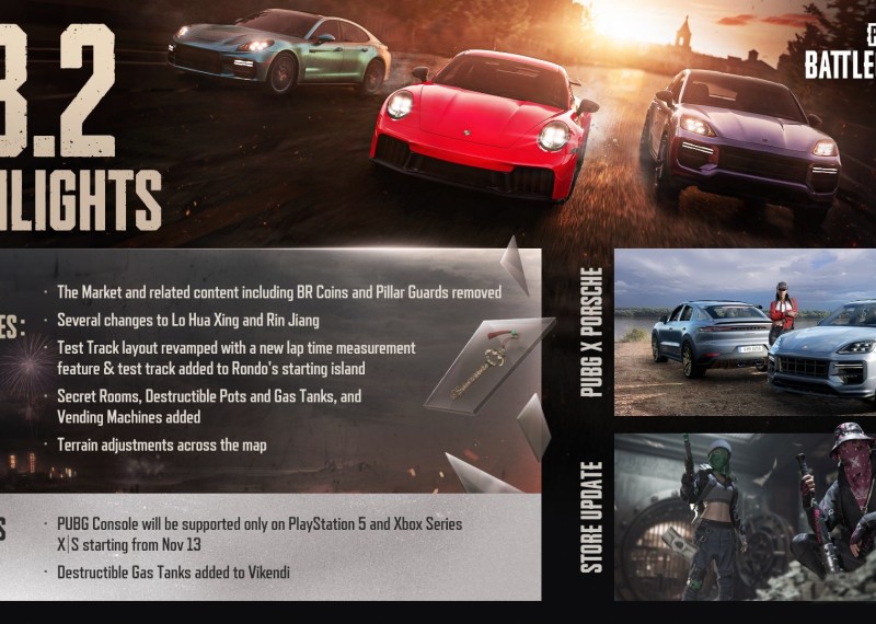 AMSTERDAM, Hollanda –04.11.2025 – KRAFTON, Inc. bugün itibarıyla yepyeni bir Porsche iş birliği, önemli Rondo güncellemeleri ve PlayStation 5 ve Xbox Series X|S yeni nesil konsol desteğini içeren PUBG: BATTLEGROUNDS 38.2 Güncellemesinin yayınlandığını duyurdu.