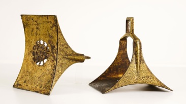 Hint kültüründe kutsal kabul edilen at, Vedalar gibi en önemli dini metinlerde sıkça yer alır. Mitolojide Güneş’i temsil eden at, tanrıların biniti olarak tasvi r edilir. Bu inanışların bir yansıması olarak, özellikle 12. ve 13. yüzyıldan itibaren tapınak heykellerinde ve dekoratif objelerde at figürleri yaygınlaşmıştır. Koleksiyondaki ahşaptan oyularak çok renkli ve zengin desenlerle süslenmiş tapınak atları, Hint süsleme sanatının incelikli işçiliğini sergiliyor.