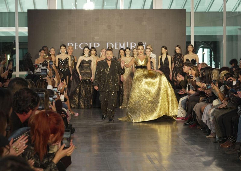 Tamamı el işçiliğiyle hazırlanmış 18 parçalık 2026 ilkbahar-yaz ürünlerinden oluşan kreasyon, Türk manken Ecem April ve Fransız mankenler tarafından sunuldu. “Zamanın Ötesinde” isimli koleksiyonda, taş işlemeli transparan kumaşlar, sarı ve siyahın uyumuyla şekillenen haute couture tasarımlar büyük alkış aldı. Tamamı özel dokuma kumaşlardan oluşan tasarımlarda üstün terzilik becerisi de konukların büyük beğenisini kazandı. Avrupa moda haftalarının öncüsü olarak bilinen ve “küresel modayı şekillendiren yer” olarak anılan Paris Moda Haftası’nda Türk rüzgârı estiren başarılı modacımız Recep Demiray, defile sonrasında selamladığı konuklarından büyük alkış aldı.