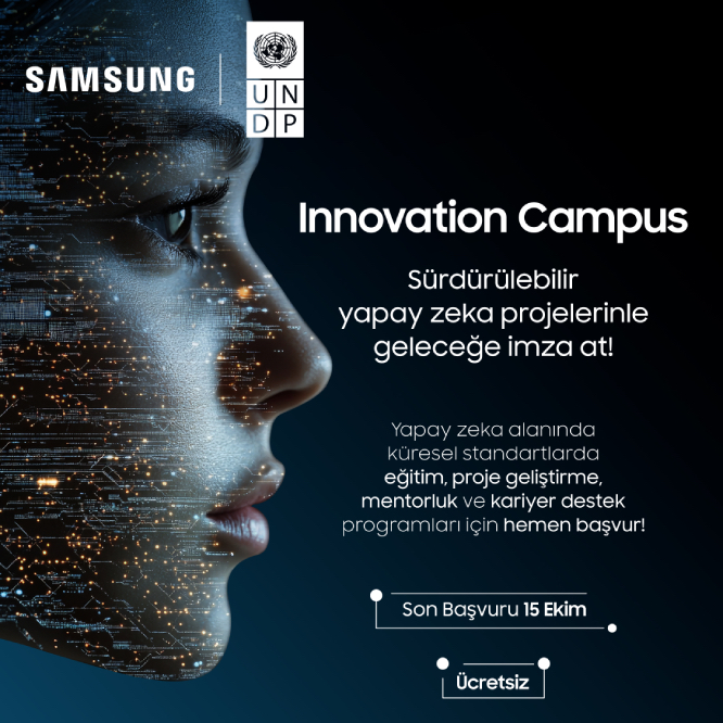 Samsung Electronics Türkiye’nin UNDP Türkiye iş birliğiyle yürüttüğü Innovation Campus programının yeni yapay zekâ sınıfı açılıyor. Samsung’un küresel eğitim programı kapsamında düzenlenen ve keşifsel veri analizi, makine öğrenimi, doğal dil işleme ve dil modelleri ve derin öğrenme gibi konularda verilecek olan 350 saatlik eğitim için başvurular başladı. 18-29 yaş aralığındaki gençlerin başvurularına açık olan eğitim, katılımcılara yapay zekâ teknolojileri odaklı dijital beceriler kazandırarak onları geleceğe hazırlıyor.